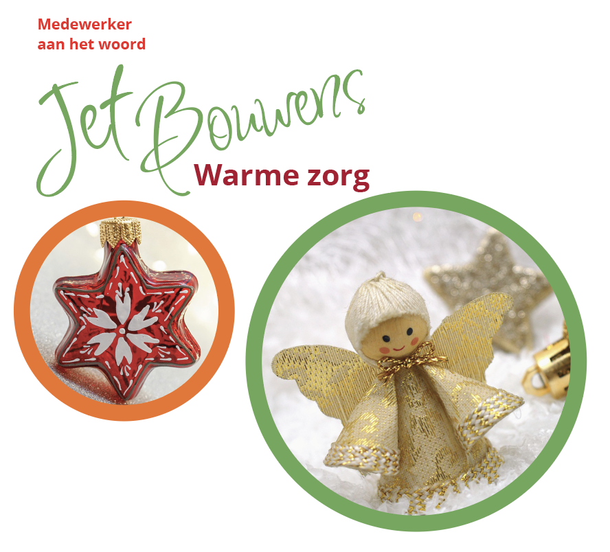 In deze decembermaand denken we aan extra warmte, lichtjes, sfeer. Daarom interviewen we dit keer Jet Bouwens, begeleider op woonhuis De Blitz. Jet staat bekend als collega die ‘warme zorg’ biedt aan onze medewerkers.