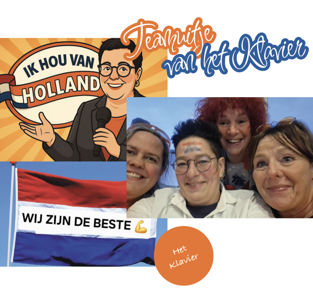 Daar we in de avond af zouden sluiten met ‘ik hou van Holland” ging het ene team in een oranje outfit op stap en het andere team vanzelfsprekend in rood-wit-blauw.