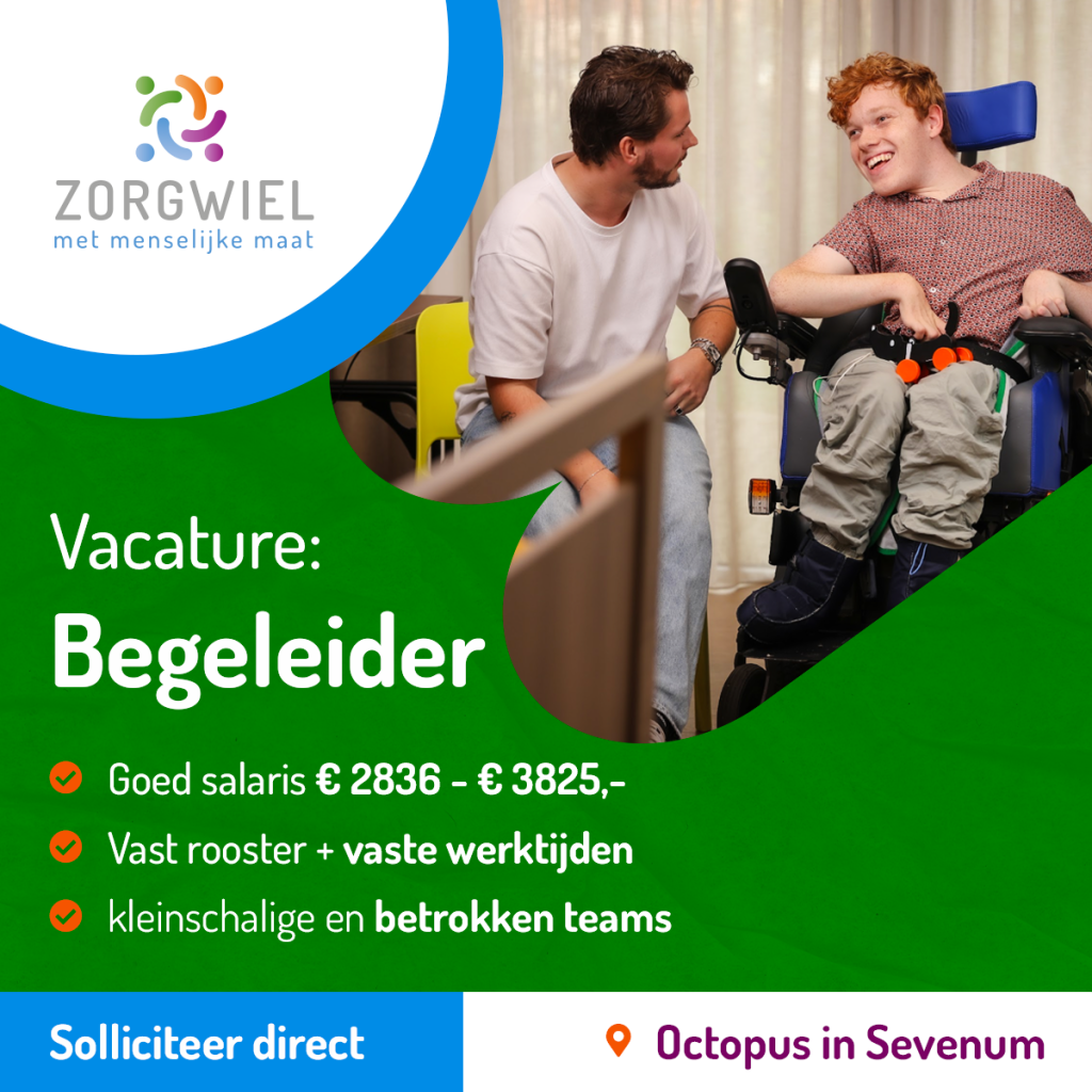 Wil jij graag écht wat betekenen voor een van onze bewoners en voor hem zijn huis een thuis maken? Voor woonhuis Octopus in Sevenum zijn wij op zoek naar een Begeleider die een op een begeleiding biedt aan een van onze bewoners.